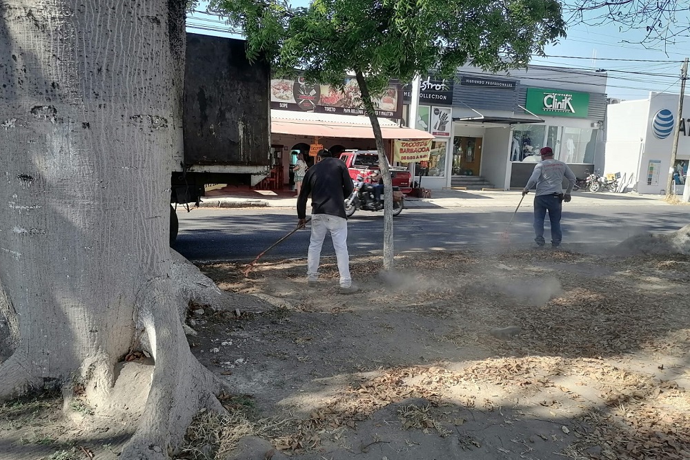 Las acciones consistieron en la limpieza de camellones, el trabajo de corte de césped y maleza con desbrozadoras, así como el retiro de raíces y tierra de las banquetas y pavimento.