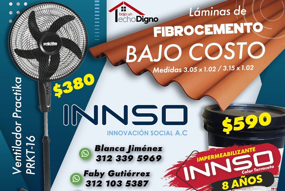 Así mismo se indica que el impermeabilizante es marca propia de la asociación “Impermeabilizante INNSO”, con una durabilidad de hasta 8 años, color terracota, y la cubeta de 19 litros tiene un costo de 590 pesos.