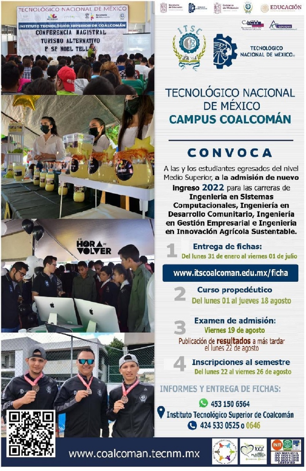 COALCOMÁN, Mich., 31 de febrero de 2022.- A través de sus redes sociales, el Tecnológico Nacional de México, campus Coalcomán, dio a conocer su convocatoria para aspirantes de Nuevo Ingreso 2022, en la que a partir de este lunes y hasta el 01 de Julio los estudiantes podrán solicitar su ficha para formar parte de la máxima casa de estudios superiores de la región.