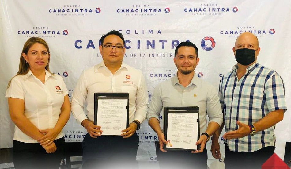 El Rector de la Universidad José Martí, Marcos Barajas Yescas, y el Presidente de la Cámara Nacional de la Industria de Transformación de Colima (CANACINTRA), Kevin Tello López, firmaron un convenio de colaboración que dará facilidades de acceso a la propuesta educativa de la Universidad José Martí para todas y todos los integrantes de dicha Cámara.