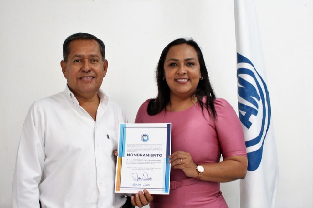 Manzanillo, Col. La presidenta del Partido de Acción Nacional de Colima, Julia Jiménez, entregó el nombramiento al nuevo delegado del Comité Directivo Municipal de Manzanillo, Juan Carlos Castañeda Naranjo, quien estará fungiendo como representante de este instituto político.