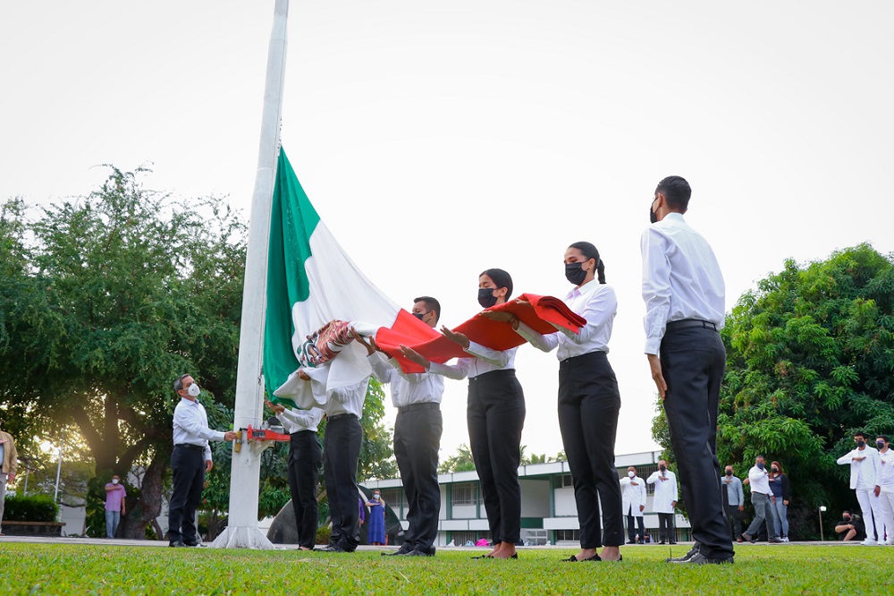 En su discurso, el rector comentó que nuestra Bandera “es uno de los símbolos más representativos de la nación, que nos otorga identidad y refleja nuestra herencia histórica, fincada en un alto sentido de pertenencia hacia una comunidad fuerte y resiliente, que ha encontrado los medios para crecer a pesar de las dificultades”.