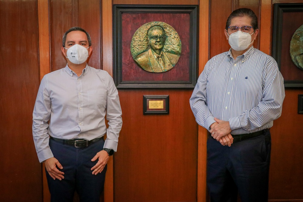 Eduardo Hernández, visiblemente emocionado, agradeció al Dr. Cristian Torrez Ortiz “su noble gesto y atenta invitación a esta sala de juntas para develar el medallón con el cual me sumo a esta colección de los rectores de la Universidad, formando así parte de su historia”.