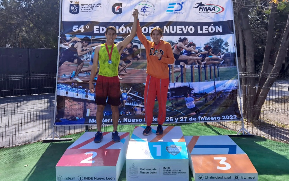 Este fin de semana, Melissa Gabriela Muñoz Ascencio, alumna de la Facultad de Ciencias de la Educación ganó la medalla de oro en salto de longitud, con una marca de 5.96 metros y Javier Martínez Sánchez, de la Facultad de Arquitectura y Diseño ganó plata en los 200 metros planos, con un tiempo de 21.35 segundos, al participar en la 54 Copa Nuevo León 2022, que reúne a los mejores deportistas de atletismo del país.