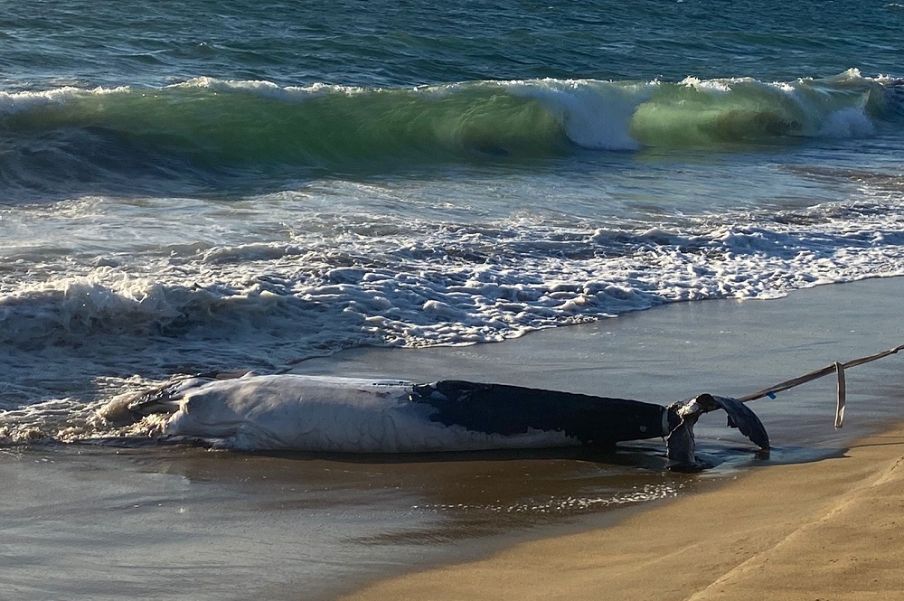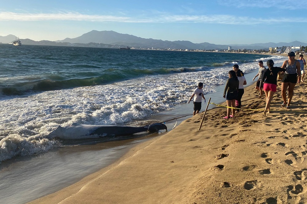 Manzanillo, Col. La tarde de este viernes fue reportado el hallazgo de un ballenato muerto que fue arrastrado por las corrientes marinas hacia la orilla en Playa Las Brisas.