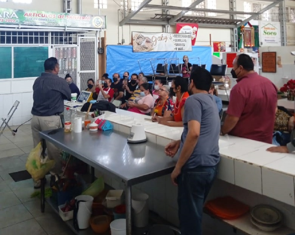 La capacitación en el mercado Álvaro Obregón se da de manera constante, de acuerdo a las obligaciones que se tienen por parte de las y los comerciantes que integran este espacio al que las familias asisten a realizar sus compras de alimentos e insumos.