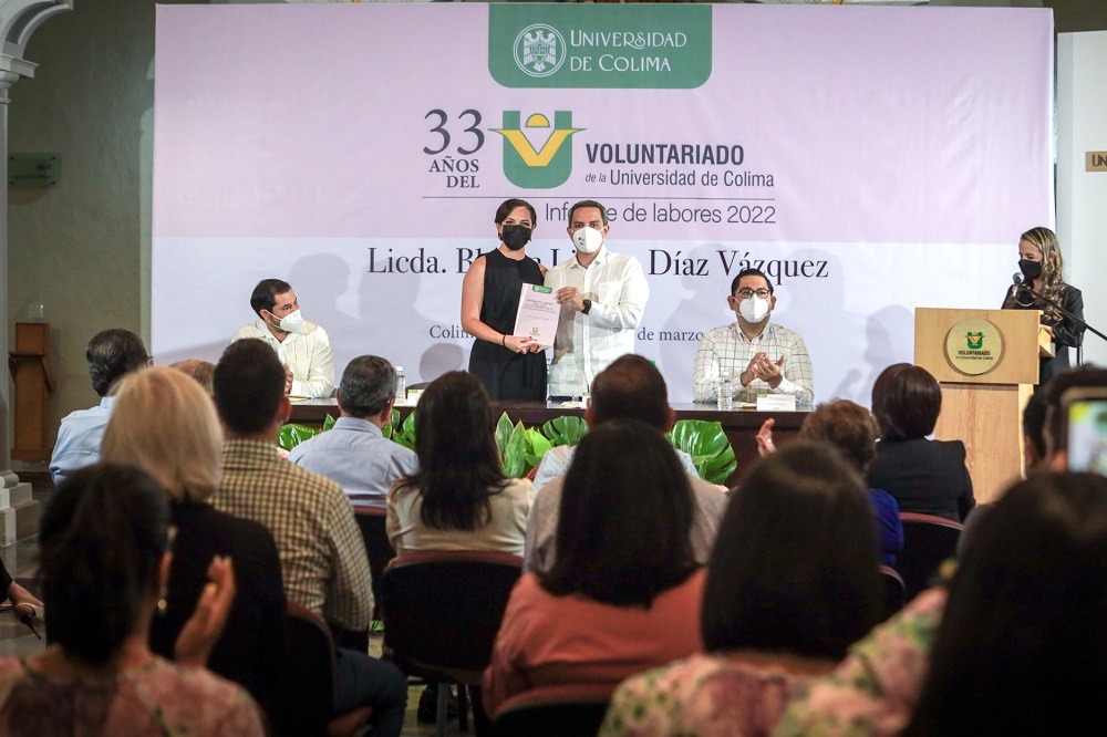 El jueves por la noche, en la Pinacoteca Universitaria, la presidenta del Voluntariado de la Universidad de Colima, Blanca Liliana Díaz Vázquez presentó su primer informe de labores, en el que destacó las alianzas con organizaciones de la sociedad civil, la creación de campañas con impacto positivo en el medio ambiente, la donación altruista de sangre y la creación de la primera sala de lactancia materna en la Universidad de Colima.