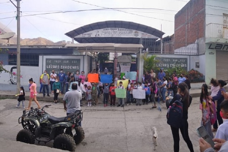 Aquila, Mich. En la mañana de este jueves en la cabecera municipal de Aquila, Michoacán, padres de familia y maestros de la escuela primaria rural estatal Lázaro Cárdenas, iniciaron una movilización pacífica con la toma de las instalaciones del plantel en demanda de que la Secretaría de Educación de Michoacán les asigne los cinco profesores faltantes en los turnos matutino y vespertino, y para que les den los libros de texto que afirman no les han entregado en los dos últimos ciclos escolares.