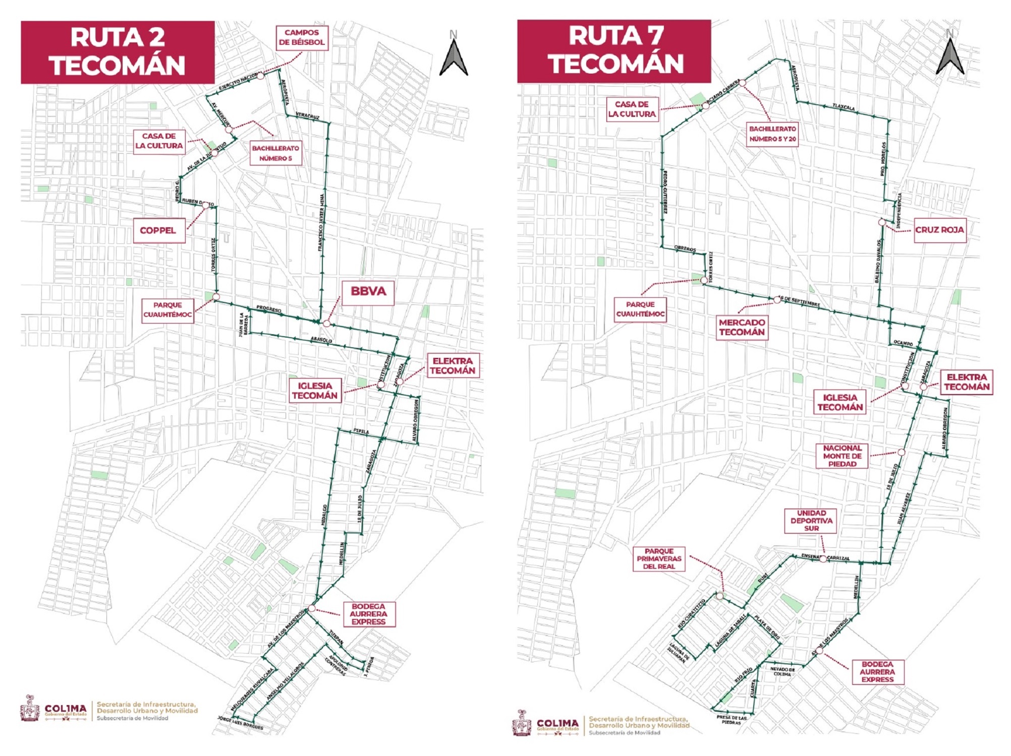 El Gobierno del Estado de Colima, a través de la Subsecretaría de Movilidad, anuncia que las rutas 2, 4 y 7 del municipio tecomense se verán modificadas para adecuarse al cambio de sentido de vialidad, propuesto por el H. Ayuntamiento de Tecomán, cuyo cambio buscará agilizar la circulación en la zona centro de esta ciudad.