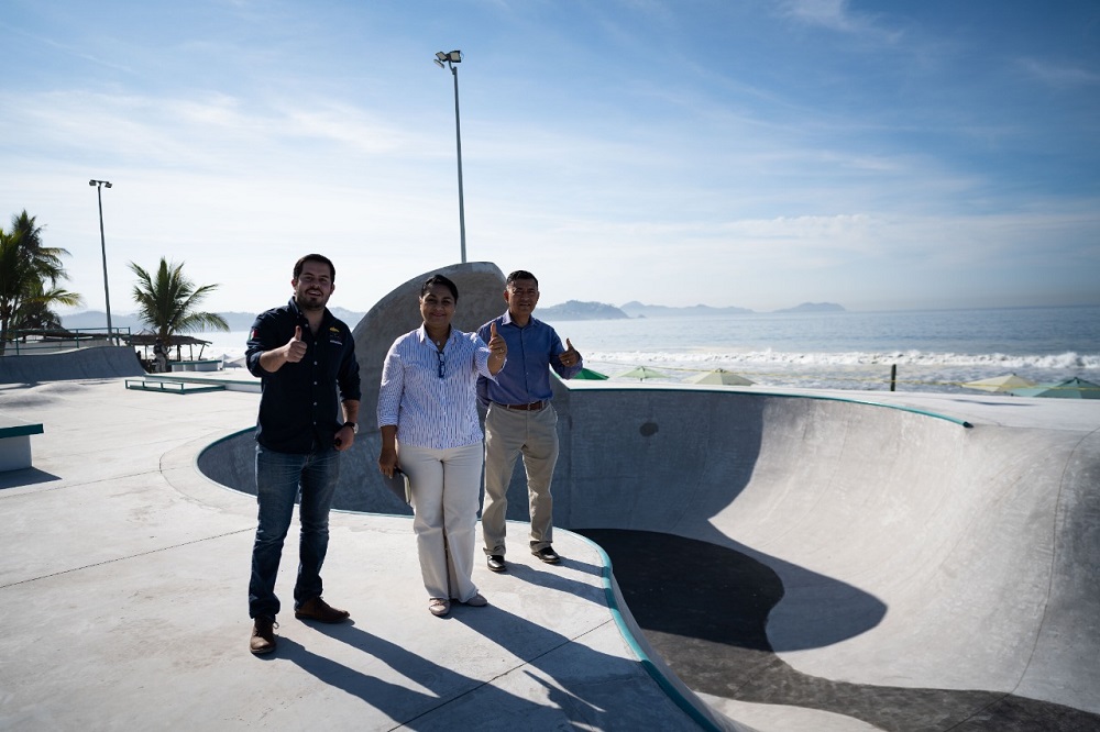 La alcaldesa puntualizó que la obra se hizo con todas las especificaciones y normas que marcan los Juegos Olímpicos, por lo que se trata de una pista de patinaje de primer nivel, construida en la orilla del mar, que la hace única en todo el país.