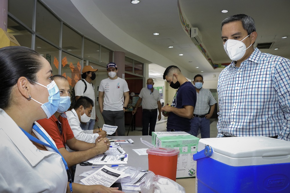 Como parte de esta acción, el rector Christian Jorge Torres Ortiz Zermeño visitó este martes uno de los puestos de vacunación instalados en el campus central de la Universidad de Colima, para promover e impulsar esta campaña.
