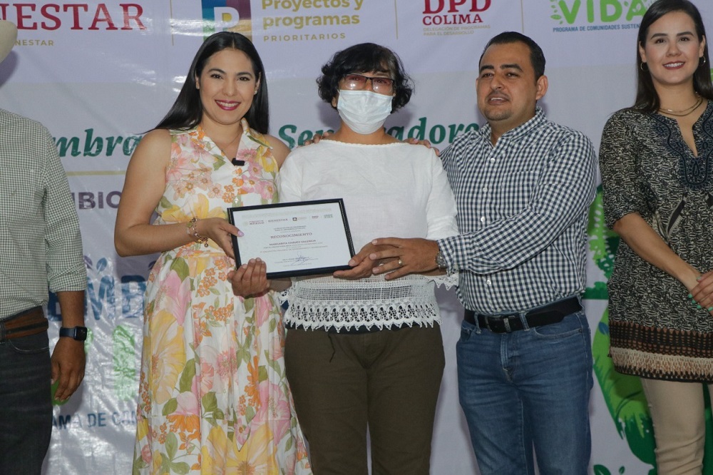 La gobernadora Indira Vizcaíno Silva sostuvo este miércoles en Tecomán una reunión con campesinas y campesinos de Armería, Ixtlahuacán, Manzanillo y Tecomán, del Programa “Sembrando Vida”, donde destacó la importancia de que los recursos llegan ahora de manera directa, mes a mes y sin intermediarios ni moches a quienes realmente lo necesitan, de hacer las cosas bien y transformar Colima y destacó el orgullo por sus orígenes campesinos en su familia.