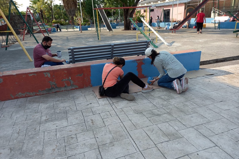 Recordó que hace unas semanas se apoyó a la Comisión Municipal de Agua Potable de Comala (COMPAPAC) para realizar la limpieza de los tanques de agua, en la parte norte de la cabecera municipal, además en el mes de diciembre de llevó a cabo la limpia y pintura de bancas del jardín principal y hoy le toca el turno al jardín de La Trinidad.