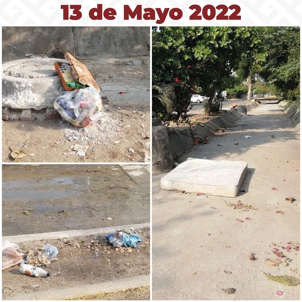 Personal de la Dirección de Conservación y Mantenimiento de Obras Públicas del Municipio, realizó del 9 al 12 de mayo, una intensa jornada de trabajo de limpieza en el canal, en la que retiraron muebles viejos, cacharros, sedimentos, basura, ramas y troncos; sin embargo, a sólo un día de terminar el desazolve y limpieza; los vecinos ya volvieron a arrojar basura y hasta un colchón en el cauce del canal.