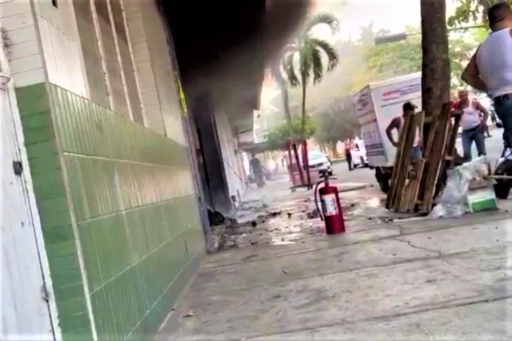 Al parecer los vecinos llamaron a los números de emergencia para denunciar el incidente, mientras que intentaban apagar el fuego de la empresa de paquetería.