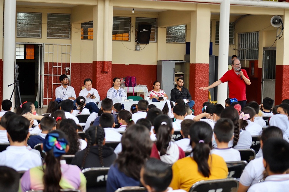 La charla del historiador, que estuvo acompañada con interacción directa con las niñas y los niños, comenzó remembrando la vida de México previo a la conquista, “invasión” como la llamó; habló sobre la primera civilización (Olmeca), sobre los Calpulli base social en que las familias trabajaban para un mismo entorno y su prosperidad, “cada pueblo era dueño de lo suyo”.
