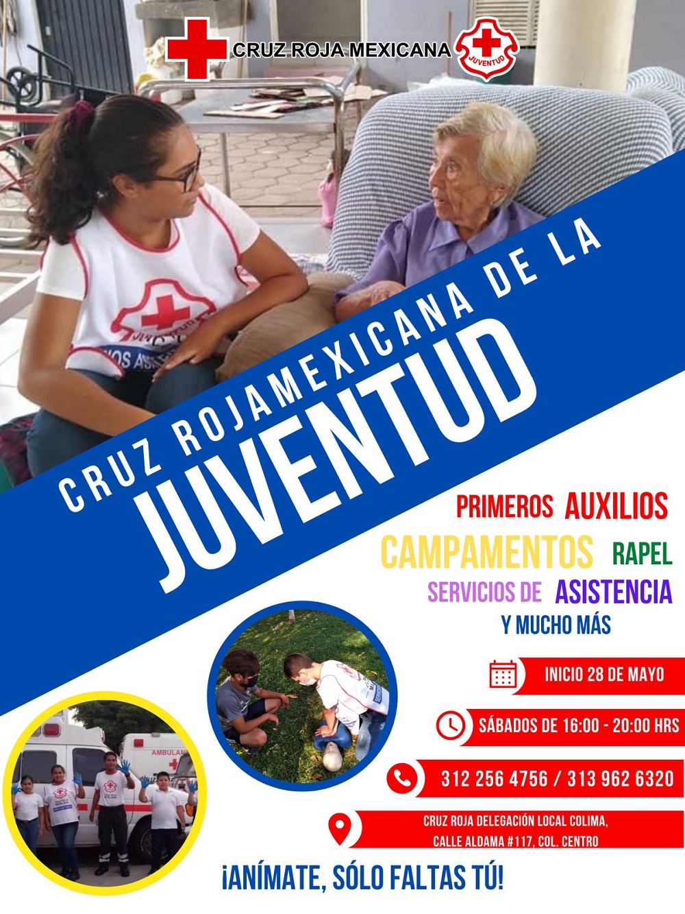 Ángel Vázquez Martínez, Coordinador Estatal de Juventud de Cruz Roja Colima, dio a conocer que está abierta la convocatoria "Cruz Roja Mexicana de la Juventud" dirigida a niñas, niños y jóvenes de entre 8 y 25 años de edad, para que formen parte de la Benemérita Institución.