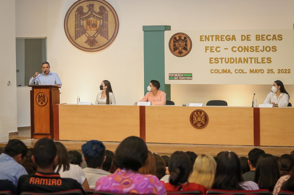 La ceremonia de entrega de estas becas se realizó en el auditorio de la Facultad de Ciencias Políticas y Sociales. Allí, el rector de la Universidad de Colima dijo que las becas para la educación surgen de diversas fuentes: empresarios, trabajadores o egresados, “lo que siempre hay que reconocer y agradecer, además de celebrarlas y mantenerlas, porque pueden ser la diferencia entre que continúen o tengan que dejar sus estudios”.
