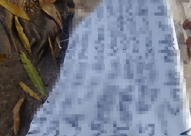 Su ubicación fue alertada por personas que pasaban por el lugar, por lo que al acudir elementos policíacos, una vez corroborada la localización de una cartulina color amarillo fosforescente, acordonaron el área y llevaron a cabo el levantamiento para su traslado al SEMEFO y realizar las pesquisas correspondientes.