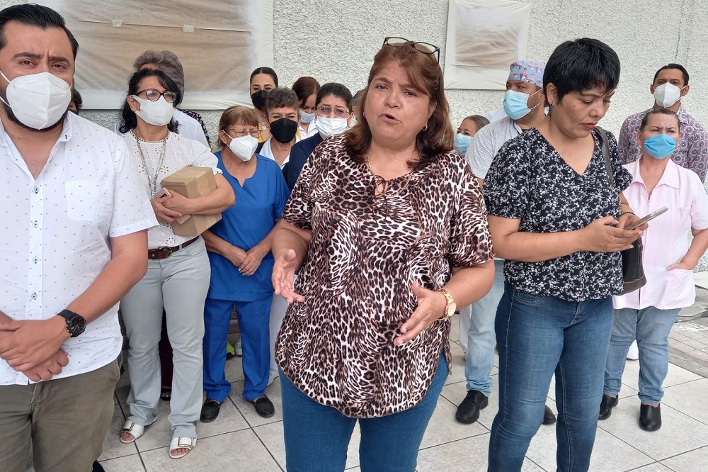 Integrantes de la sección 30 del Sindicato Nacional de Trabajadores de la Secretaría de Salud (SNTSSA) se manifestaron al exterior del Hospital Regional Universitario denunciando que el programa IMSS-Bienestar invade la normatividad de la Secretaría de Salud ya que no conoce su sistema laboral, así como sus prestaciones, por lo que exigen que sean respetados sus derechos laborales.