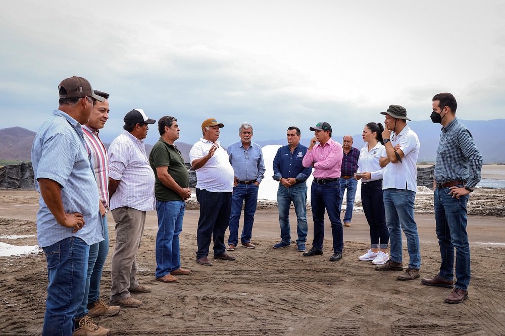 Christian Jorge Torres Ortiz Zermeño, rector de la Universidad de Colima, acompañado por algunos funcionarios de la institución, tuvo un primer acercamiento con directivos de la Sociedad Cooperativa de Salineros de Colima, en las salinas de Cuyutlán.