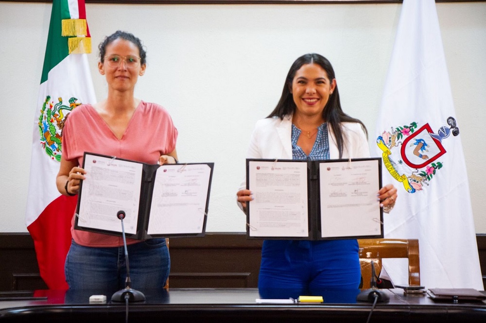 La gobernadora Indira Vizcaíno Silva firmó este miércoles en Casa de Gobierno el convenio entre el Instituto del Medio Ambiente y Desarrollo Sustentable (Imades) del Estado de Colima y la Comisión Nacional para el Conocimiento y Uso de la Biodiversidad (Conabio), que signaron la titular de Imades, Angélica Jiménez Hernández, José Sarukhán Kermez y Hesiquio Benítez, coordinador nacional y director general de cooperación internacional de la Conabio, respectivamente.