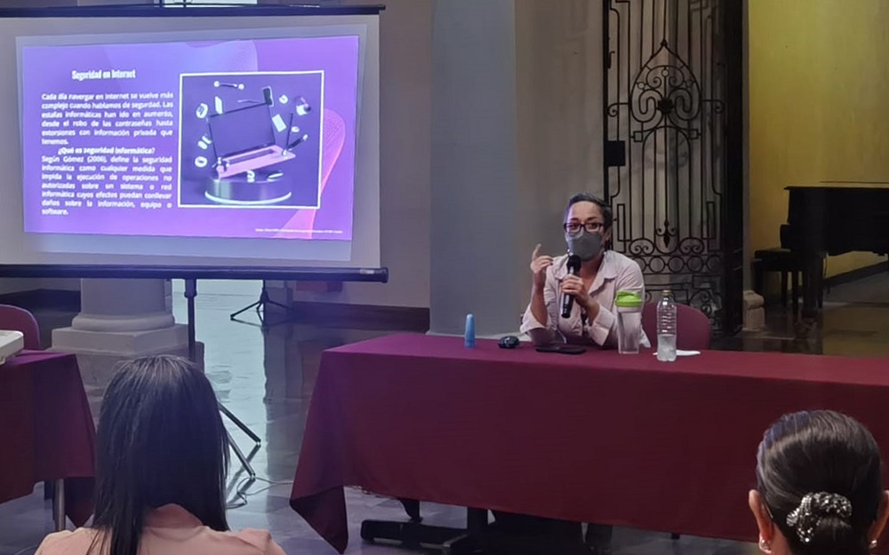 La Asociación Colimense de Universitarias (ACU) impartió en la Pinacoteca Universitaria la charla “Ciberseguridad”, a cargo de Evelyn Benavides Silva, maestra en Tecnologías de la Información e Informática Forense y Ciberseguridad, como parte de las actividades de esta asociación para generar un espacio de intercambio y aprendizaje sobre temas de interés.