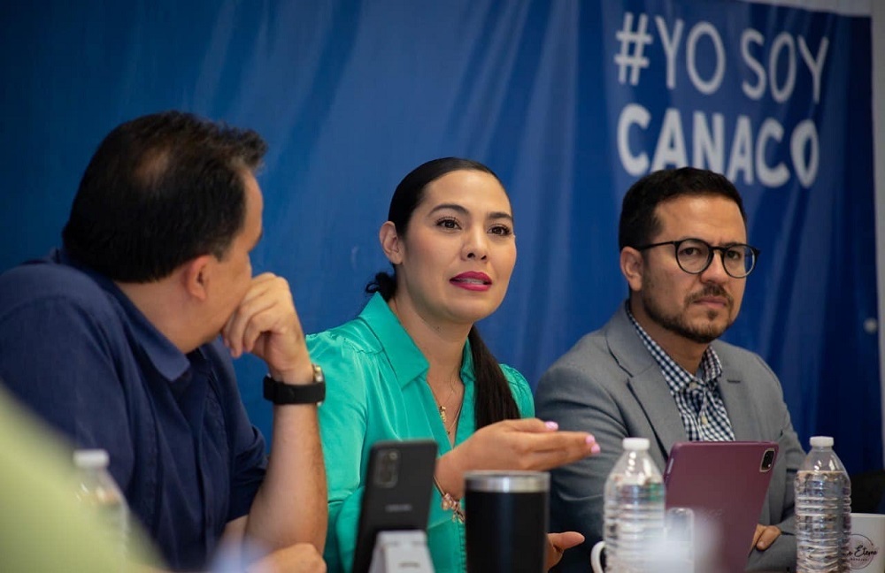 La gobernadora Indira Vizcaíno Silva se reunió este jueves con integrantes de la Cámara Nacional de Comercio, Servicios y Turismo (Canaco Servytur) de Colima, donde además de explicar el trabajo que realiza su administración en coordinación con fuerzas federales y estatales, para atender la seguridad pública, resaltó la relevancia que tiene la denuncia ciudadana en dicha atención.