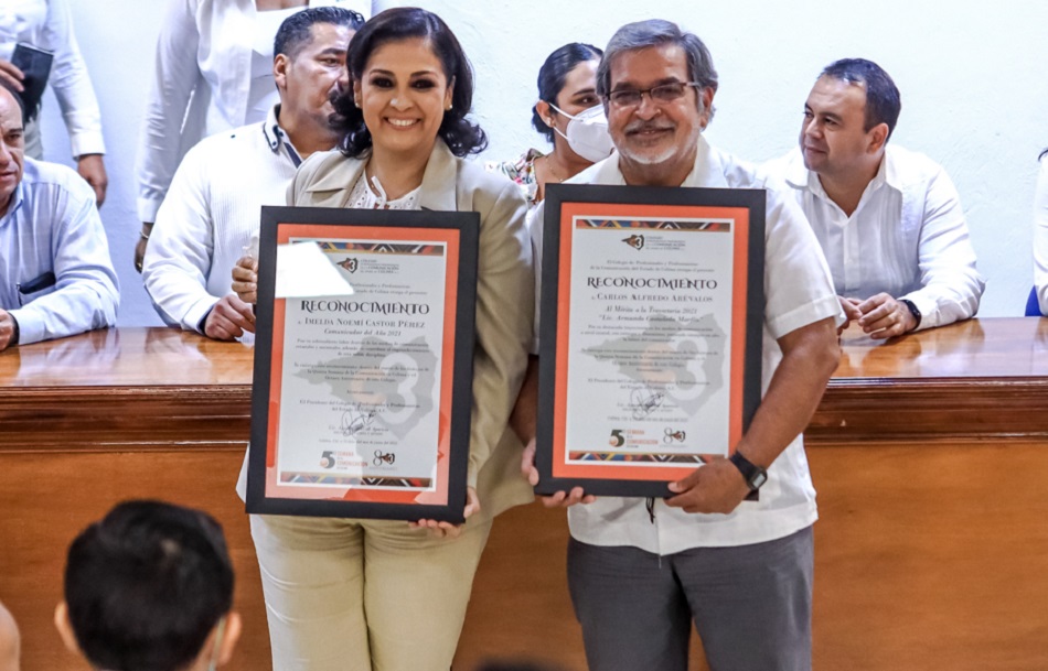 En el marco de la quinta Semana de la Comunicación, el Colegio de Profesionales y Profesionistas de la Comunicación en el Estado de Colima (C3) reconoció el trabajo y la trayectoria de Imelda Noemí Castor Pérez como Comunicadora del Año 2021, y el Mérito a la Trayectoria 2021 “Mtro. Armando Castañeda Morfín”, que se otorgó a Carlos Alfredo Arévalos Vallejo, quien se acaba de jubilar del periódico “El Comentario”.