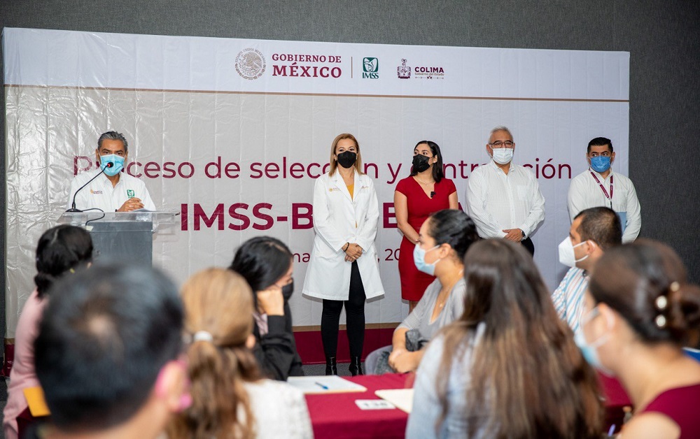 Agradeció al personal del sector salud por participar en el reclutamiento para desarrollar aquí el IMSS-Bienestar; reconoció al Gobierno de México e instituciones federales y estatales que hacen posible esta etapa al incorporarse a este modelo que volverá una realidad el derecho a la salud para todas y todos los colimenses, pues abre nuevas oportunidades laborales, brinda reconocimiento y certeza al personal de salud en Colima.