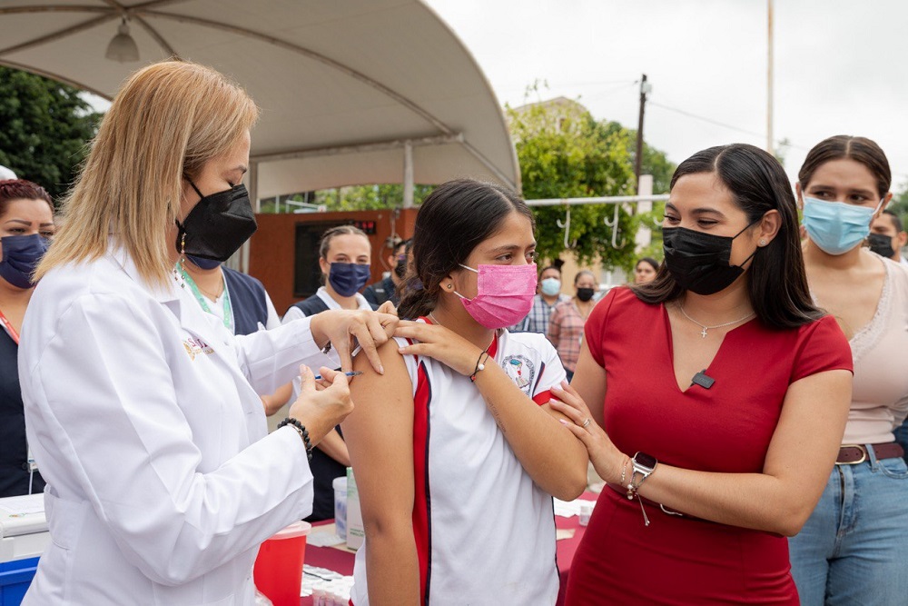 Al atestiguar la jornada de vacunación desde la secundaria "Jesús Silverio Cavazos Ceballos", la mandataria estatal detalló que en esa escuela se vacunarán 393 alumnas y alumnos, siempre y cuando tengan autorización firmada por su madre, padre o tutor.