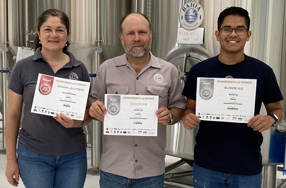 El director General de Cervecería de la Costa, Armando Pérez Trejo, informó que las cervezas Caleta (Session IPA), Costera (Blonde Ale) y Bahía (Light Lager Alemana) de Cervecería de la Costa ganaron medallas de Plata y Bronce, en sus respectivas categorías, en la competencia internacional Aro Rojo 2022.