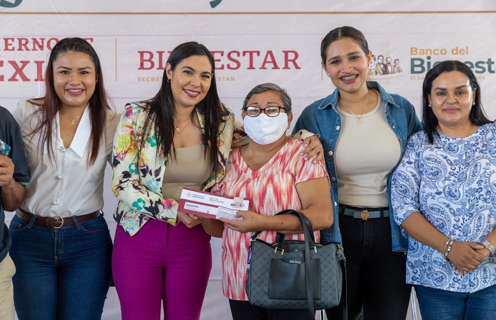 En esta entrega estuvieron también la secretaria de Bienestar, Inclusión Social y Mujeres, Dulce Huerta Araiza; la presidenta municipal, Esther Gutiérrez Andrade; la diputada Myriam Gudiño Espíndola; la directora regional de Programas para el Bienestar, Karely Leticia Vázquez Solórzano y el coordinador del programa Pensión para el Bienestar de las Personas Adultas Mayores, Jonathan Lara Torres.