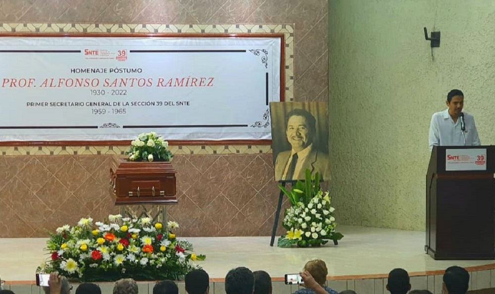 La Sección 39 del Sindicato Nacional de Trabajadores de la Educación (SNTE), encabezada por David Hernández Viera, rindió un homenaje de Cuerpo presente al Profesor Alfonso Santos Ramírez, quien fuera su Primer Secretario General y fundador de esta organización gremial, quien falleciera este Lunes en esta Capital.
