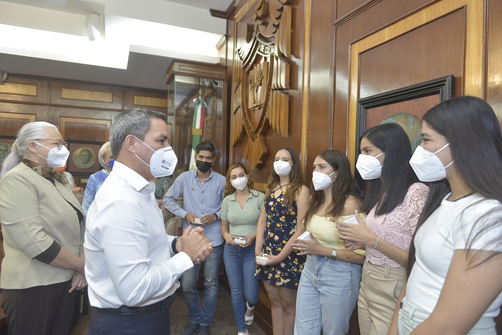 Siete estudiantes de la Facultad de Ciencias de la Universidad de Colima (cinco mujeres y dos hombres), que obtuvieron una beca para continuar sus estudios de posgrado en universidades e institutos de Estados Unidos, visitaron este viernes al rector Christian Jorge Torres Ortiz Zermeño, quien reconoció el trabajo permanente y apasionado de la planta docente de este plantel, que desde hace varios años entusiasma por la investigación científica a las y los jóvenes desde el bachillerato.