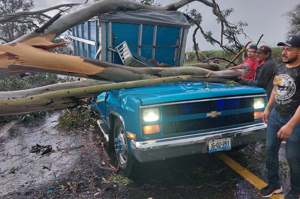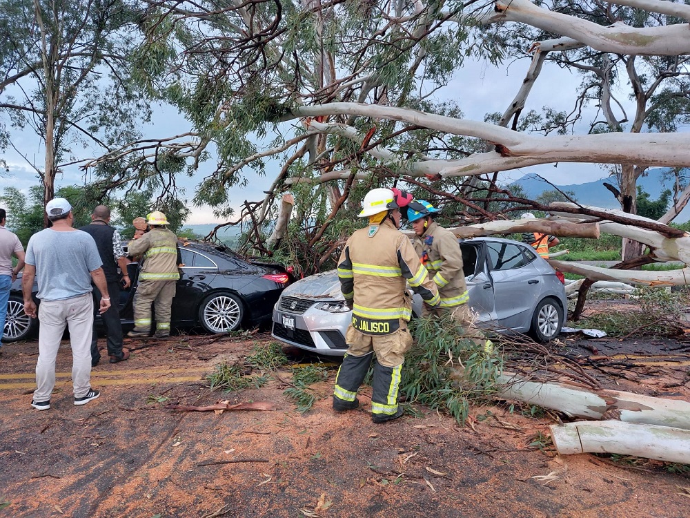 Al menos dos personas murieron este domingo por la tarde al caerles un árbol cuando circulaban a bordo de una camioneta por la autopista Guadalajara-Colima.