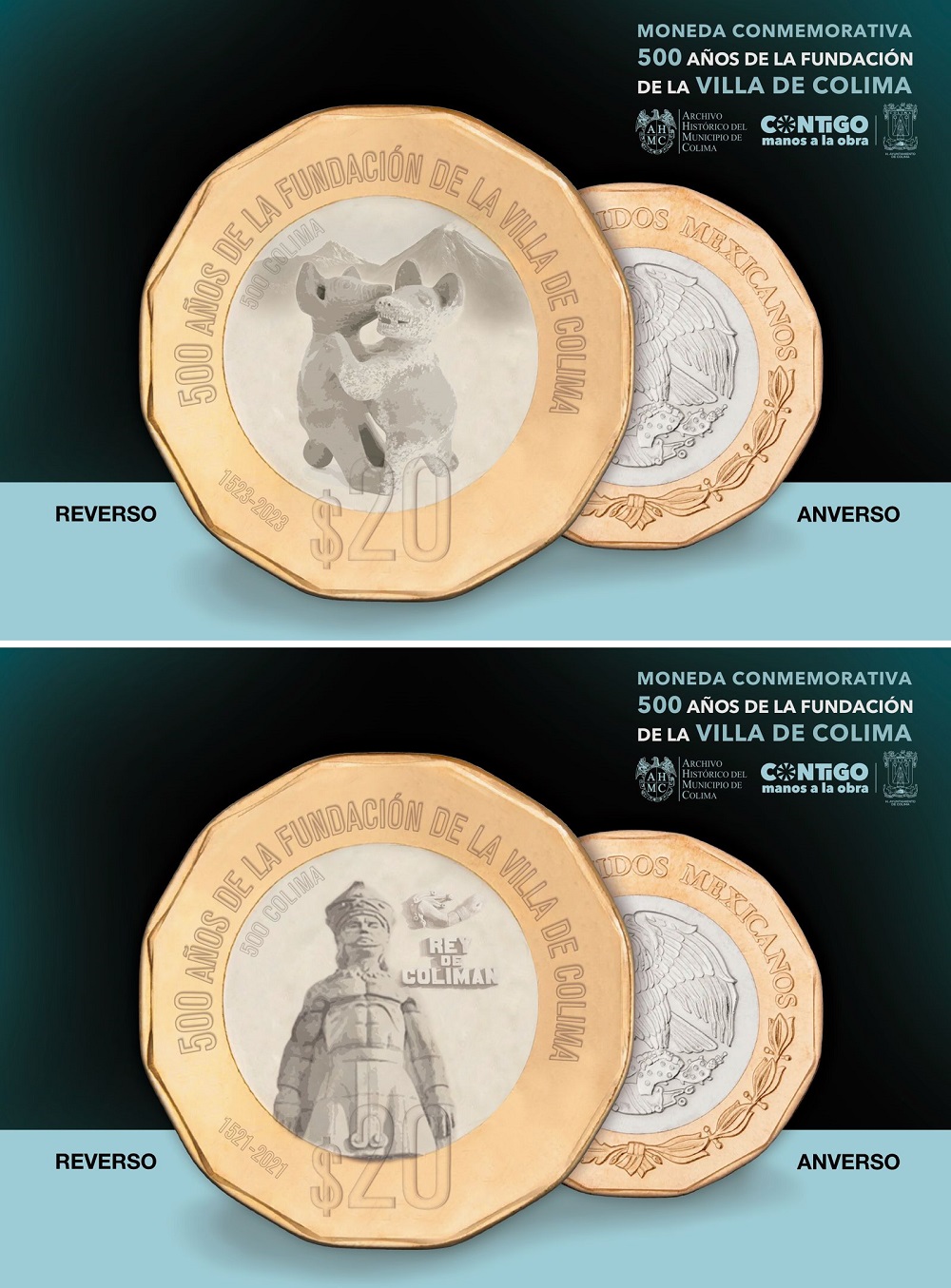 De igual forma, explicó que el jueves pasado se presentó al Presidente de la mesa directiva de la Cámara de Diputados Sergio Gutiérrez Luna, y a la presidenta de la mesa directiva del Senado, Olga Sánchez Cordero la iniciativa para que se acuñen dos monedas conmemorativas de 20 pesos, alusivas al 500 aniversario de la villa de Colima.