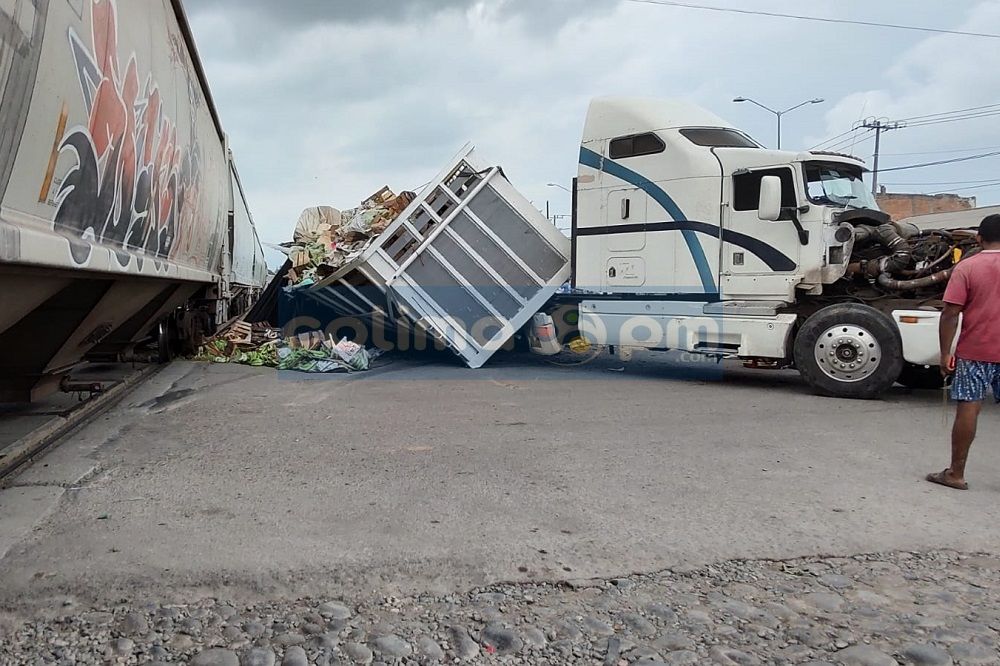 Armería, Col. Un camión cargado con plátanos quiso ganarle el paso al ferrocarril en la cabecera municipal de Armería, en el cruce de la colonia Independencia.