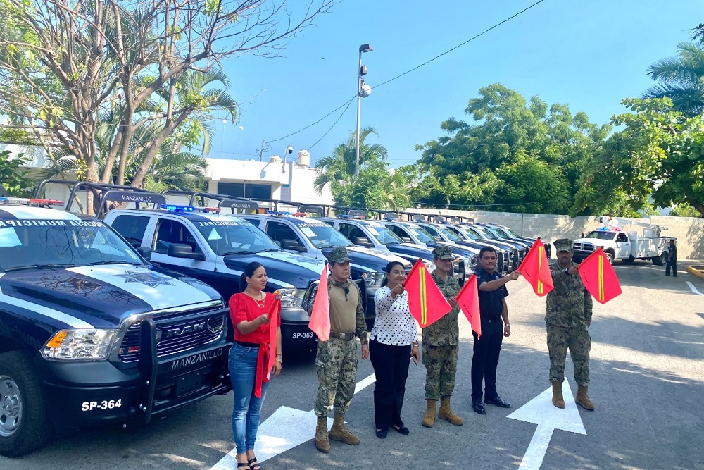 Manzanillo, Col. Para continuar con la estrategia para recuperar el orden y generar paz en el municipio, la presidenta Griselda Martínez hizo entrega de 12 patrullas y una grúa para la Dirección General de Seguridad Pública. Estas unidades que vienen a sumarse al patrimonio de las y los manzanillenses, tuvieron una inversión de 12 millones 189 mil 992 pesos.