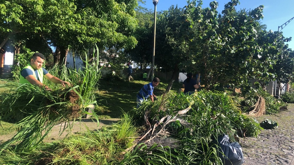 Con personal y equipo de las distintas áreas del Ayuntamiento, así como de las funcionarias y funcionarios e integrantes de los comités de barrio y ciudadanía que se sumó, se realizan trabajos de limpieza, desmonte, poda, retiro de ramas de árboles secos, pinta de bancas, desbroce y la recolección de los residuos resultantes.
