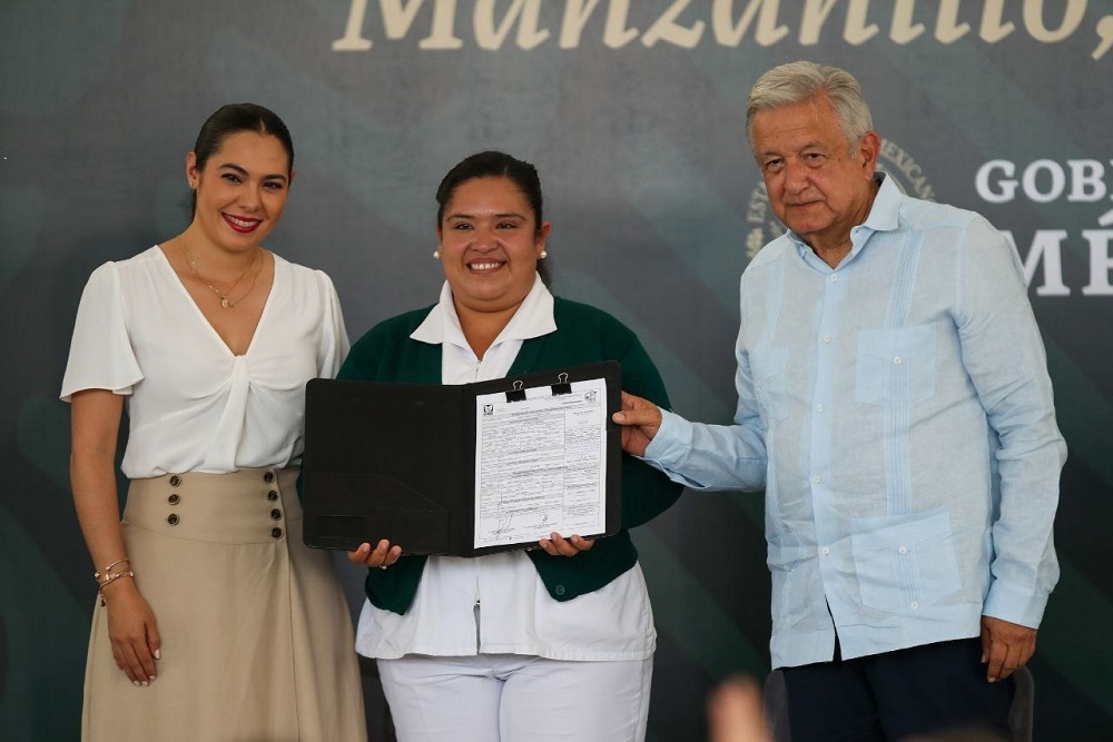 Manzanillo, Col. La gobernadora Indira Vizcaíno Silva agradeció la visita del presidente Andrés Manuel López Obrador al estado de Colima, quien comenzó este sábado su gira de dos días por la entidad, en el Hospital General de Manzanillo, donde entregó dos de las primeras 250 basificaciones que ya concluyeron el proceso y se otorgarán a personal del sector salud de Colima, bajo el modelo IMSS-Bienestar, recibiendo de manera simbólica la auxiliar de enfermería general Elvia Selene Arias Ramos y al médico general José Romero Almanza Silva.