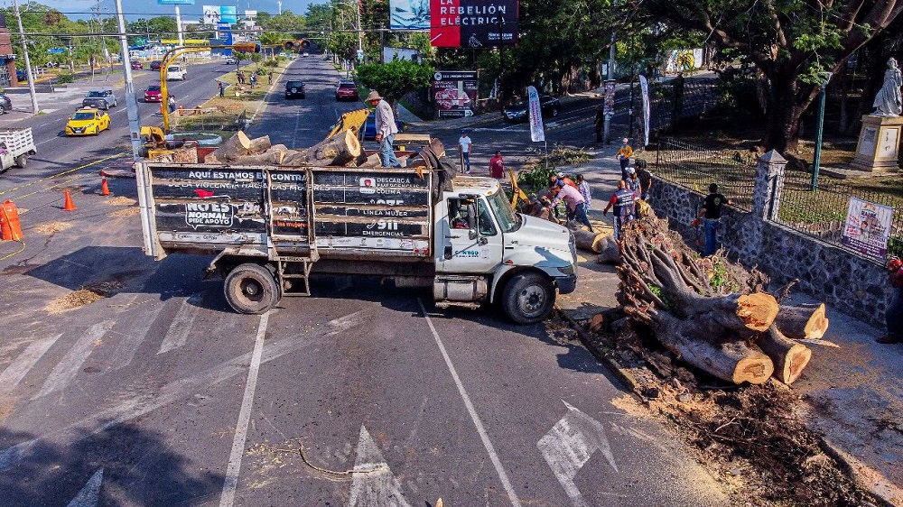 *El equipo del Ayuntamiento de Colima realizó la limpieza de la zona que resultó afectada por la caída de varios árboles y la red eléctrica, tras la tormenta del martes pasado