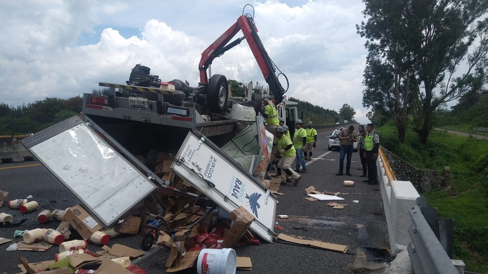 En otro hecho, doscientos metros antes de la volcadura en donde perdió la vida el menor, se registró la volcadura de una camioneta que transportaba productos alimenticios, resultando dos personas lesionadas, trasladadas al IMSS de Guzmán.