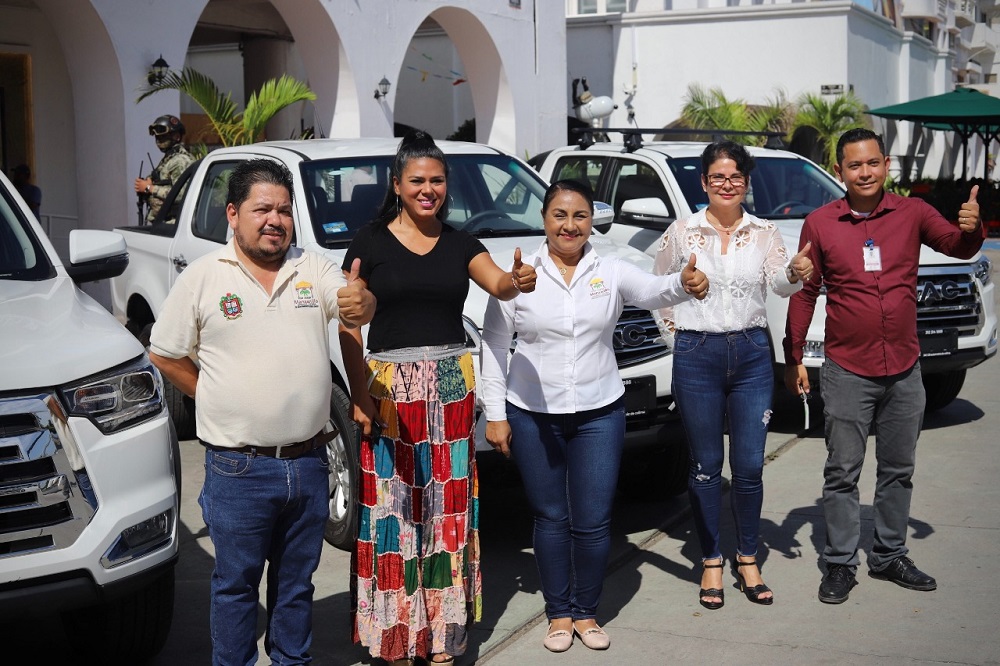 Manzanillo, Col. Para hacer más eficientes los servicios que presta el Ayuntamiento de Manzanillo a las y los manzanillenses, la presidenta Griselda Martínez hizo entrega de 3 camionetas pick up para el DIF Municipal y para las direcciones de Desarrollo Económico y Turístico, y para la de Sistemas Computacionales; las cuales tuvieron una inversión de 1 millón 495 mil 403 pesos.