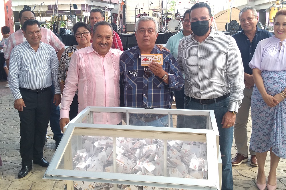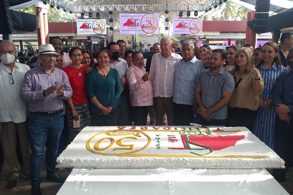 Con el sorteo de un premio de 25 mil pesos en efectivo, además de 40 premios más por 4 mil pesos cada uno, este viernes el Sindicato de Trabajadores al Servicio del Gobierno del Estado (STSGE) celebró su 50 aniversario con una comida ofrecida para sus agremiados.