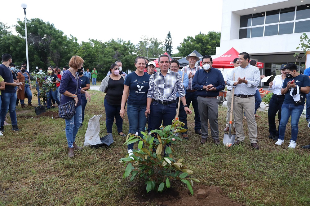Dijo que lo más importante no es plantar árboles, “ése es el primer paso, sino que quienes habitan este campus, en el que pasan gran parte del día, sean las y los responsables de darle seguimiento a esta reforestación, porque los árboles que hoy plantamos son para el beneficio de toda la sociedad, para brindarle más oxígeno al planeta”.