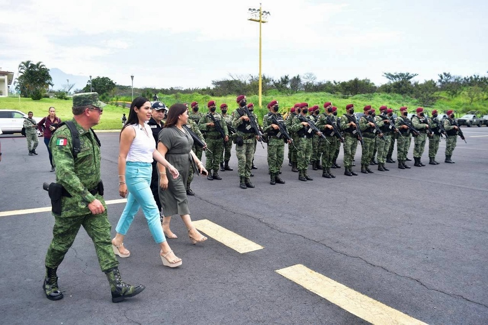 “El día de hoy (jueves 25 de agosto), estamos recibiendo aquí en la capital del estado de Colima, a cien elementos que vienen a reforzar la seguridad de las y los ciudadanos colimenses, elementos que forman parte de la Secretaría de la Defensa Nacional (Sedena), quienes han estado muy pendientes, al igual que las otras corporaciones e instituciones federales, como Guardia Nacional y Marina, de todo lo que está sucediendo en nuestro estado”, señaló la gobernadora.