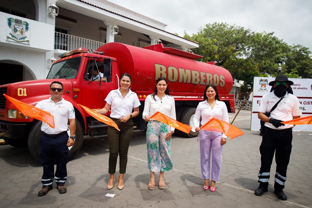 La mañana de este viernes, la gobernadora de Colima, Indira Vizcaíno Silva, entregó una unidad cisterna con capacidad de 20 mil litros de agua, a la Unidad Municipal de Protección Civil (UMPC) de Armería, para fortalecer el desempeño de este organismo, que permitirá realizar de manera más oportuna y eficiente su trabajo en beneficio de las y los habitantes del municipio armeritense.