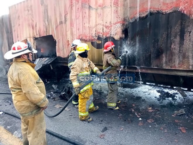 De acuerdo a la información obtenida, uno de los tráileres transportaba fertilizantes y otro, impresoras, los cuales al momento del impacto se incendiaron y al parecer el chofer del tráiler no pudo salir de la cabina y fue alcanzado por las llamas.