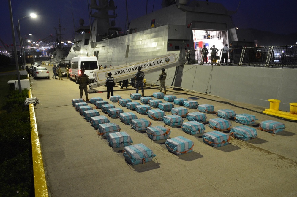 Manzanillo, Col. Personal perteneciente a la Décima Regional Naval con sede en Manzanillo, en coordinación con la Fuerza Naval del Pacífico, logró el aseguramiento de aproximadamente 2 mil 234 kilogramos de presunta cocaína, así como de dos embarcaciones menores con dos y tres motores fuera de borda, respectivamente, y la detención de siete presuntos transgresores de la ley frente a la costa de Colima.